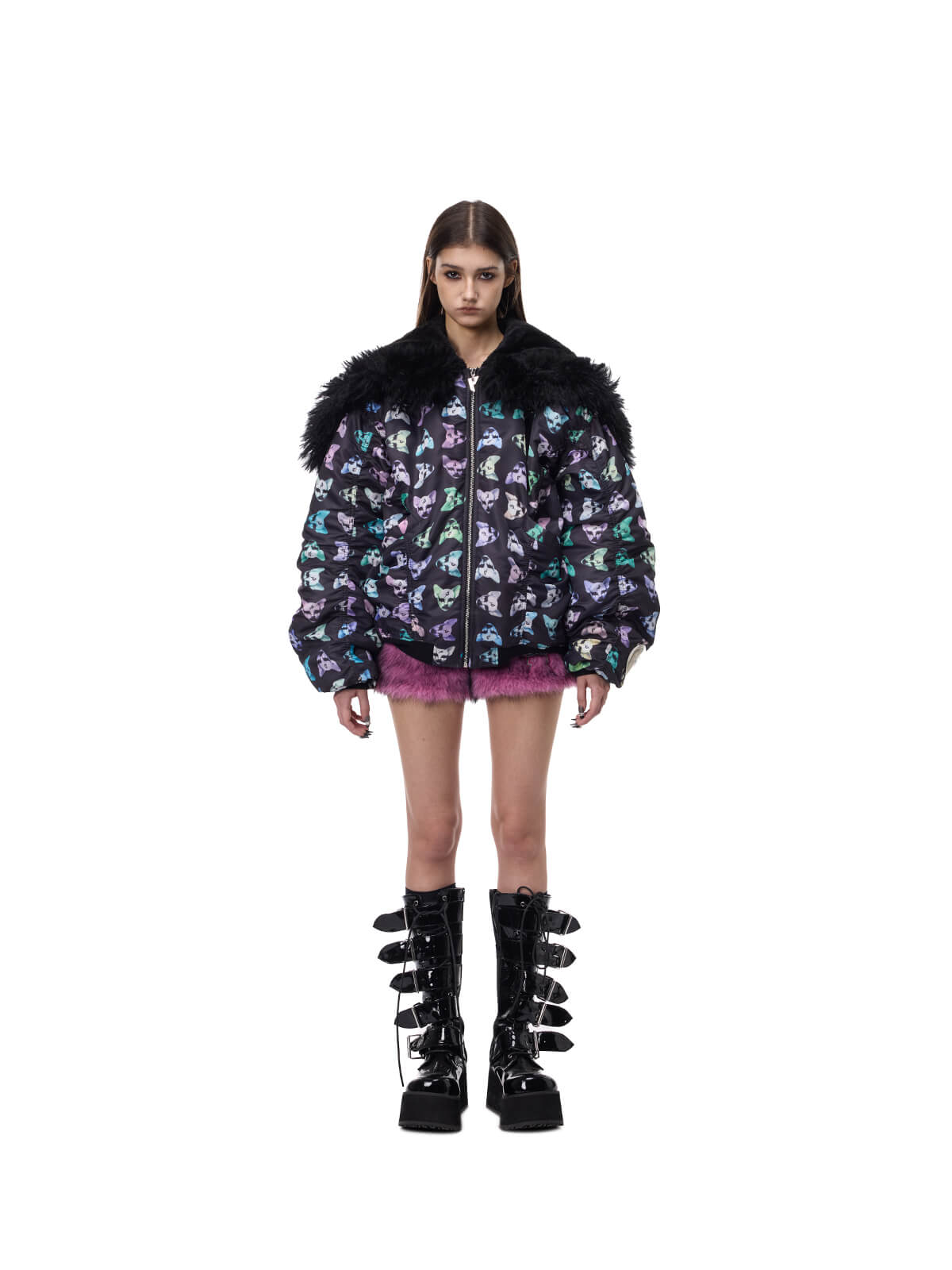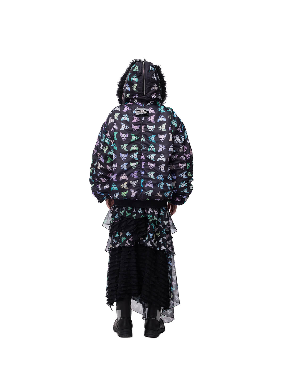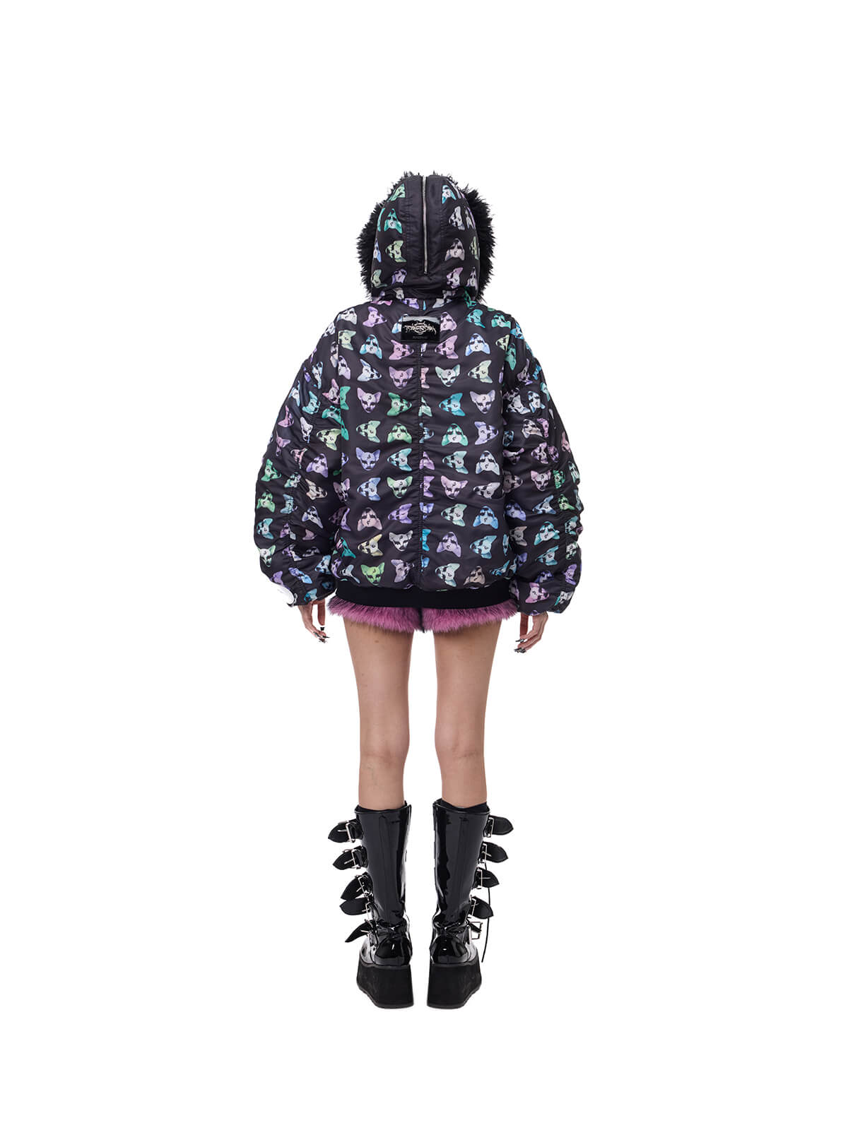 • Shirred detailing at sleeves, sides and pockets for sculpted volume