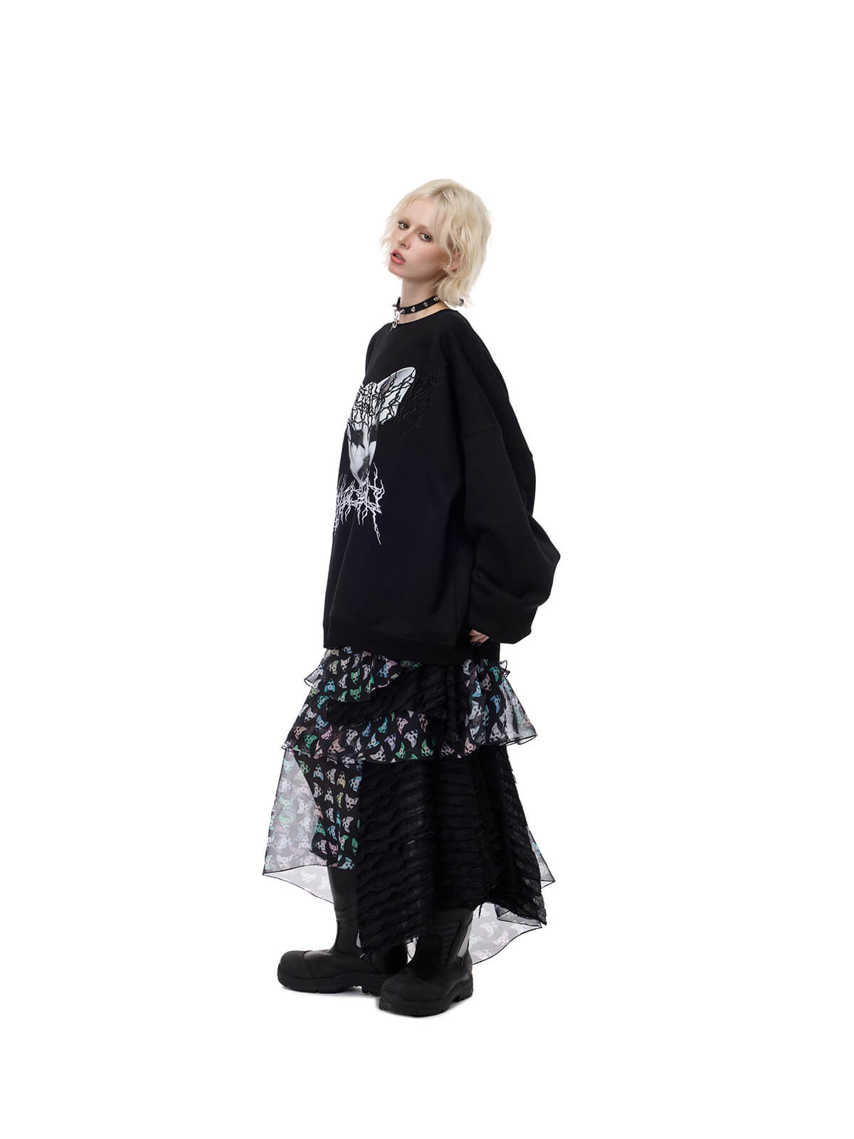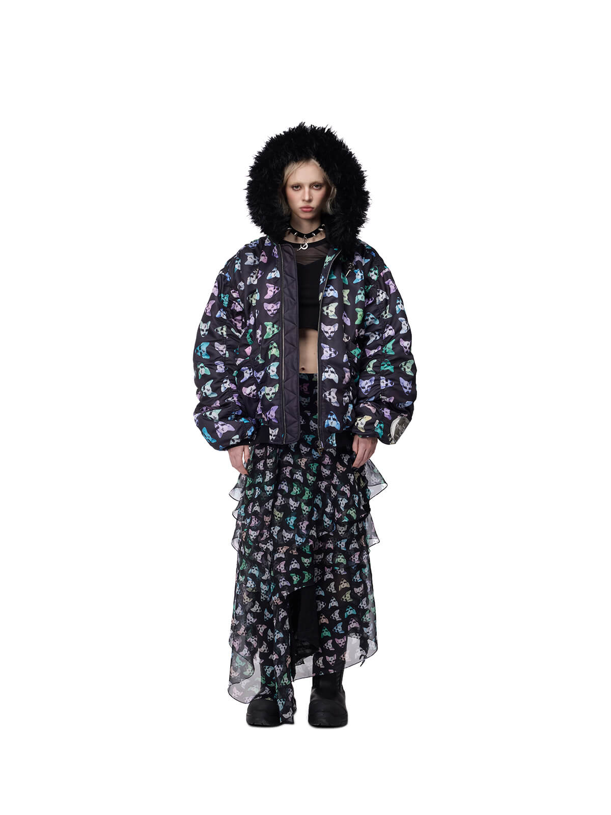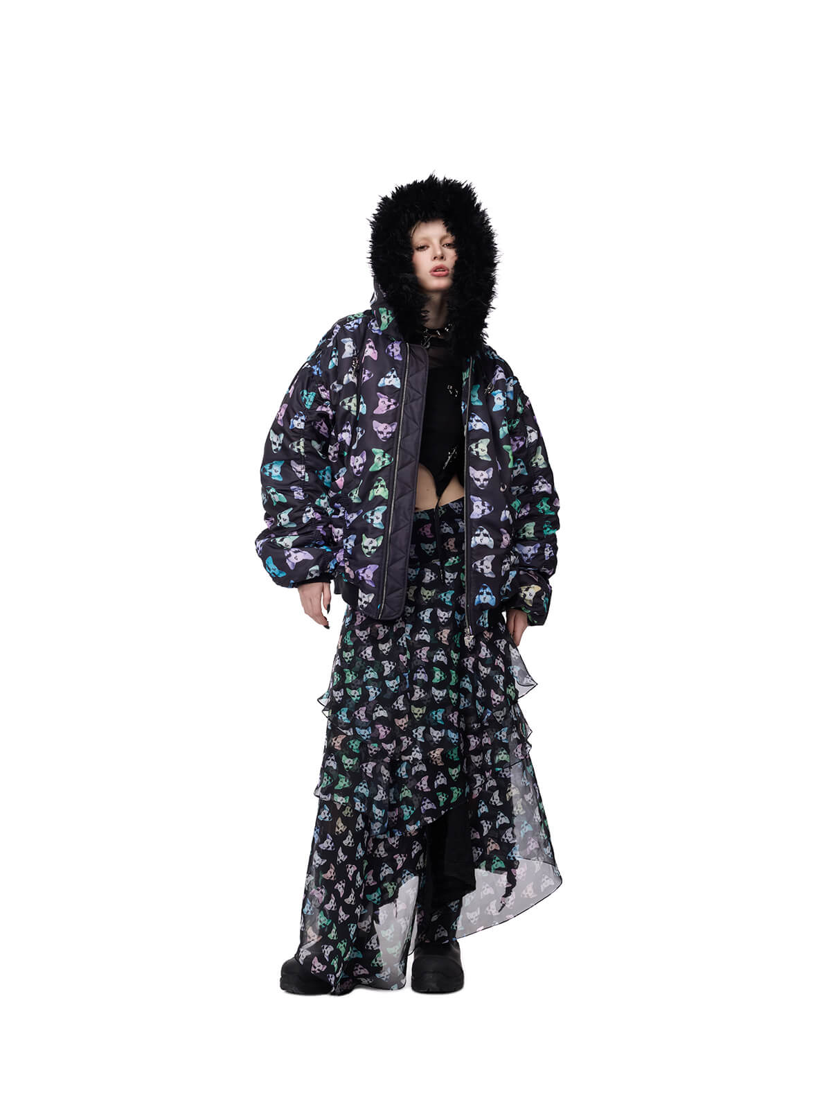 • Multicolor alien cat print on top layer